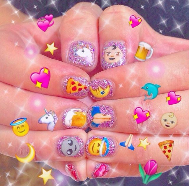 1枚目の写真は、絵文字ネイル!10個全てネイリストさんの手描きです!!細かい!!!いつもお世話になっているネイリストさんなんですが、私がやりたいネイルを快く引き受けてくれて、毎回想像以上に仕上げてくれます☆